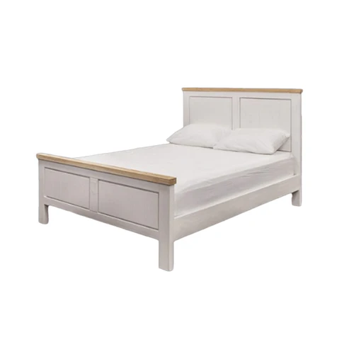 Elevate your sleep sanctuary with the classic style of the Akron Bedroom Suite. This exquisite bedroom furniture features clean lines and solid wood panels, creating the perfect foundation for any bedroom décor. The white finish is beautifully contrasted by natural wood accents running along the headboard and foot-end.
