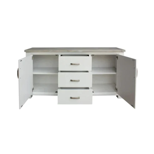 Celebrate modern sophistication with our buffet, meticulously crafted from acacia wood and finished in a striking combination of white with ashwood tops. This versatile piece seamlessly blends rustic charm with contemporary design, making it a standout addition to any dining space.