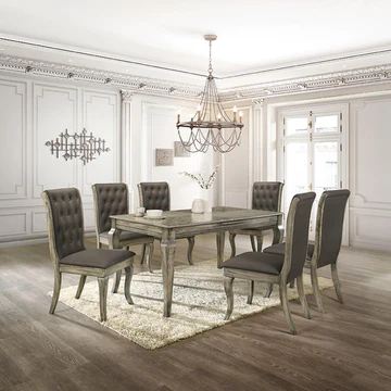 The Annabelle dining set offers timeless elegance with a stylish design and plush velvet chairs.