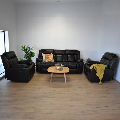 Experience the ultimate in comfort with our Executive recliner Lounge Suite, featuring a plush and soft-to-the-touch bonded leather upholstery and high-resilient seat foam.