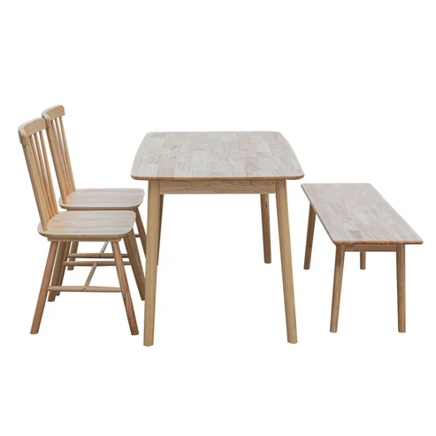 Enhance your dining space with this elegant dining set featuring clean lines and a light oak finish. Crafted from rubber wood, the table and four chairs combine durability with timeless style